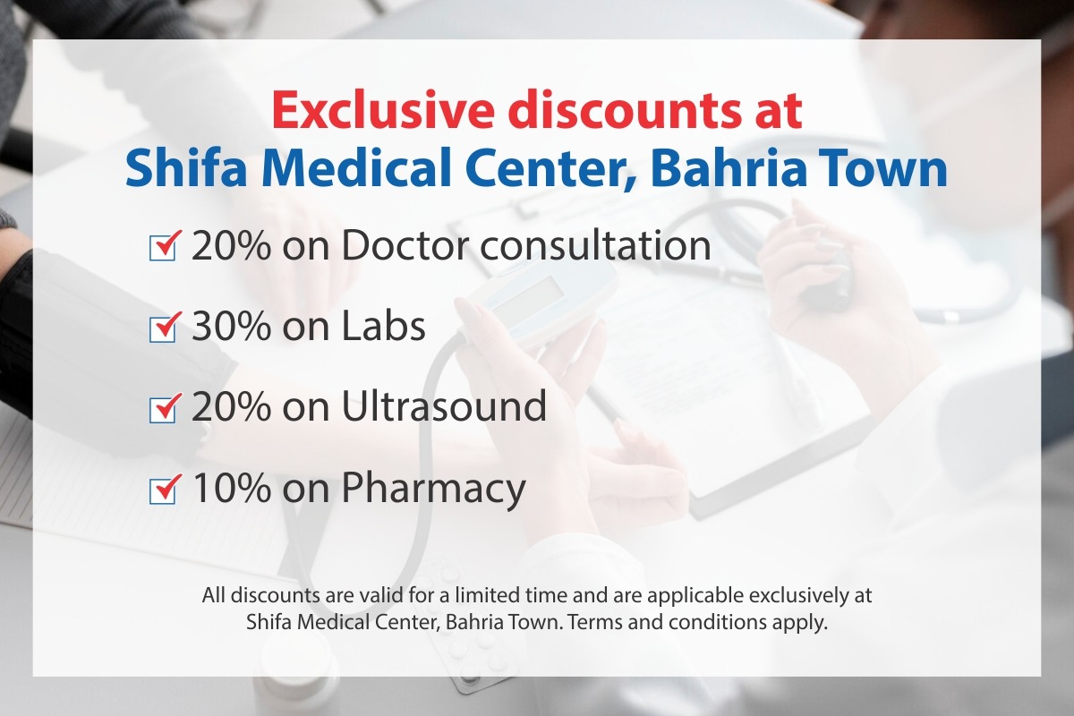 Note: The discount can be availaed only at Shifa Medical Center, Bahria Town and is valid for limited time
